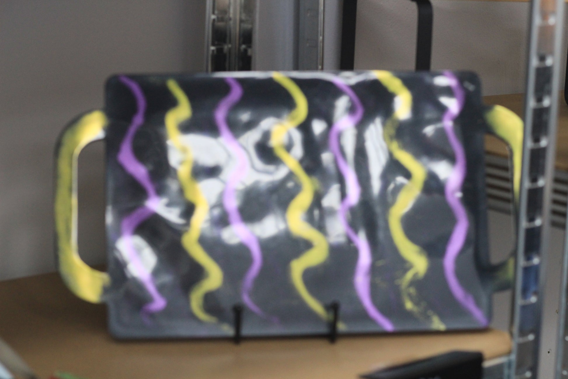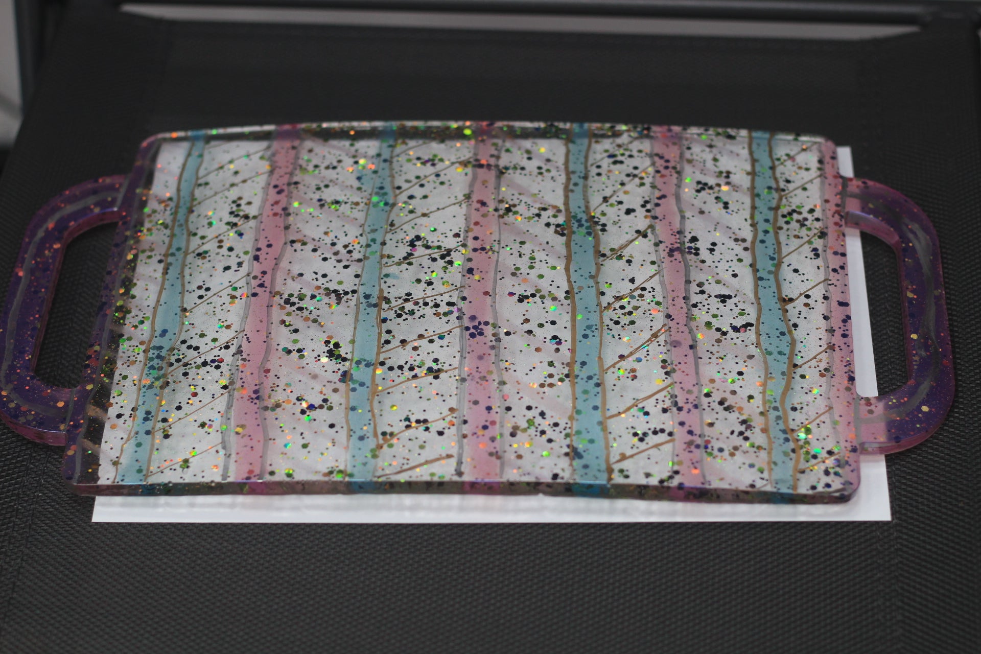 A colourful hand made resin tray. A solid black base with chameleon colours which will change before your eyes. It appears that from one angle it is gold, purple and white but depending on what angle you are looking at it from you will see differences in the colour so please don't be alarmed if the colours are not the same as they are displayed on screen.